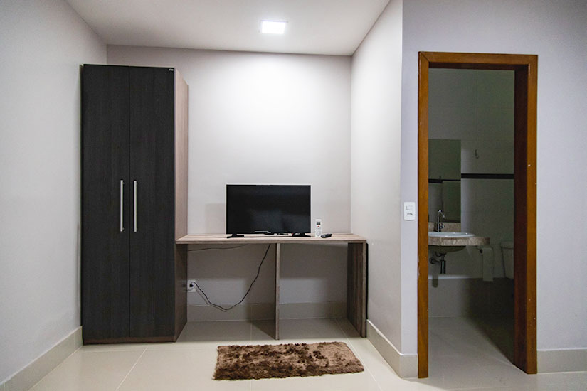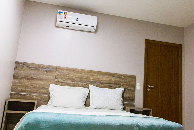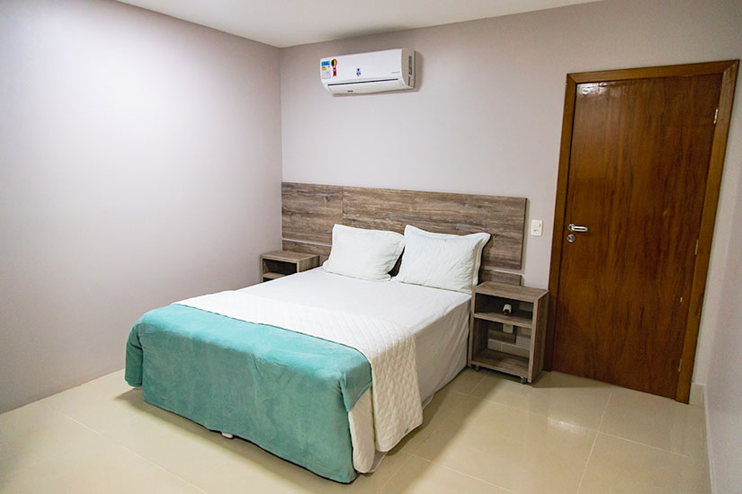 Acomodação para até 2 pessoas, podendo ser uma cama casal ou duas camas de solteiro, com banheiro privativo, TV e ar-condicionado.
