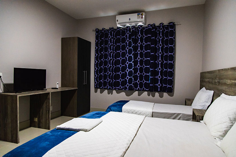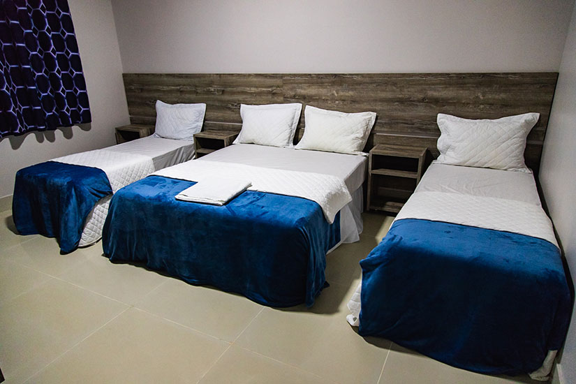 Acomodações para até 4 pessoas, podendo ser cama de casal ou camas de solteiro. Contam com banheiro privativo, TV e ar-condicionado. A capacidade máxima de pessoas pode variar de acordo com o quarto.